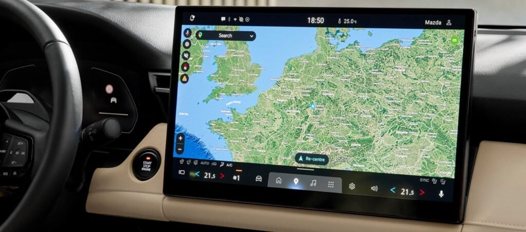 Mazda CX-5-ի նոր սերնդում ամենատեսանելի փոփոխությունները տեղի են ունեցել սրահում։ Ինտերիերի կենտրոնական տարրը 15,6 դյույմ անկյունագծով մեծացված սենսորային էկրանն է, որը պատկանում է մուլտիմեդիա համակարգին։ Սա Mazda-ի բոլոր մոդելների շարքում ամենամեծ էկրանն է այս պահին։ Այն աշխատում է Google Built-In հարթակի վրա և ապահովում է Google-ի հիմնական ծառայությունները, ներառյալ՝ Google Assistant ձայնային օգնականը, Google Maps նավիգացիան, ինչպես նաև մեքենայի տարբեր ֆունկցիաների կառավարումը ձայնային հրահանգներով։